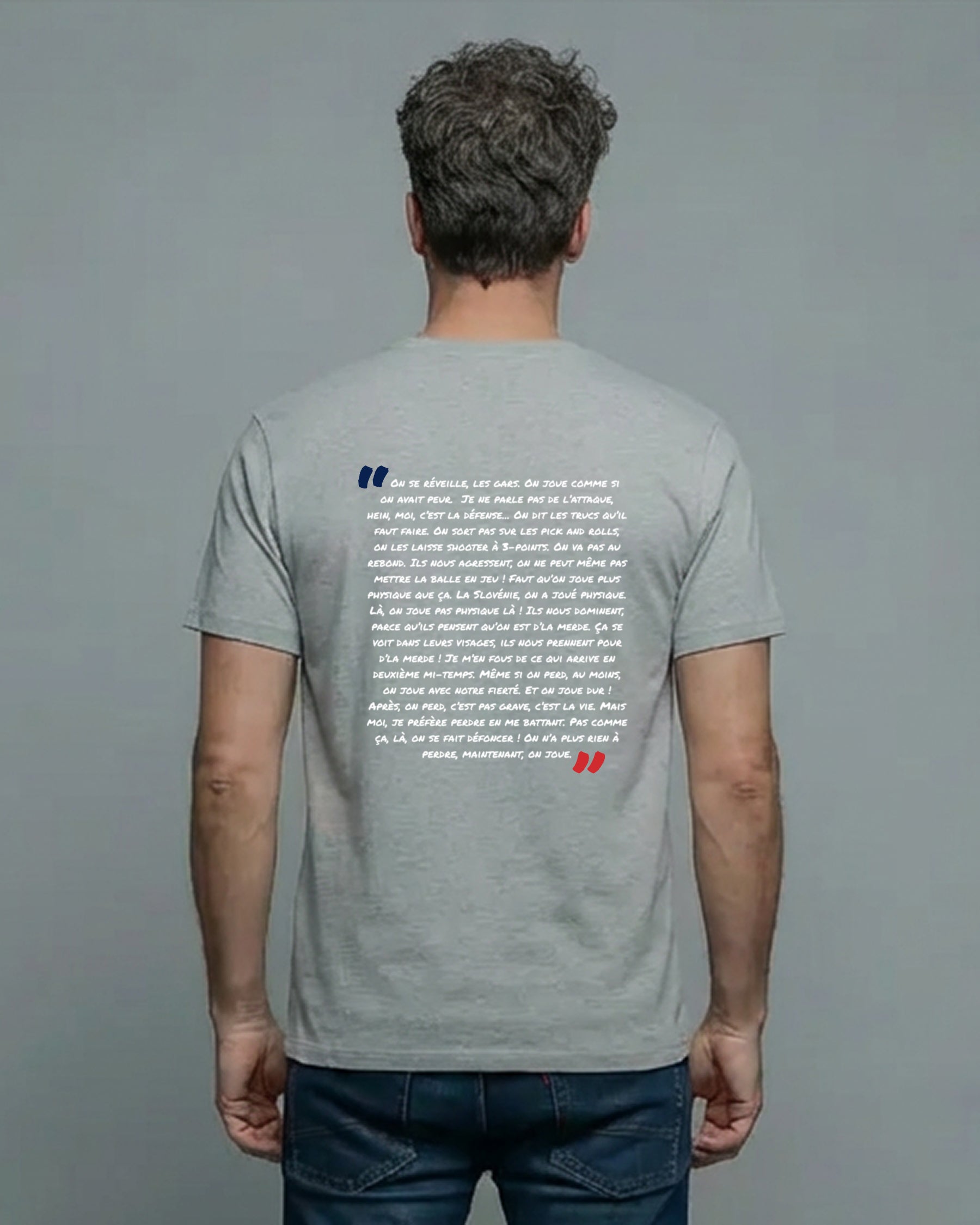 Nos T-shirts ont une coupe droite classique. Si vous hésitez entre 2 tailles et que vous aimez porter vos T-shirts ajustés, choisissez la plus petite si vous souhaitez être plus à l'aise au niveau des manches notamment prenez la taille du dessus.